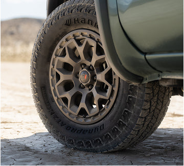 Rugged and durable wheels finished in titanium, featuring a custom Roush “R” center cap for a distinctive off-road look.